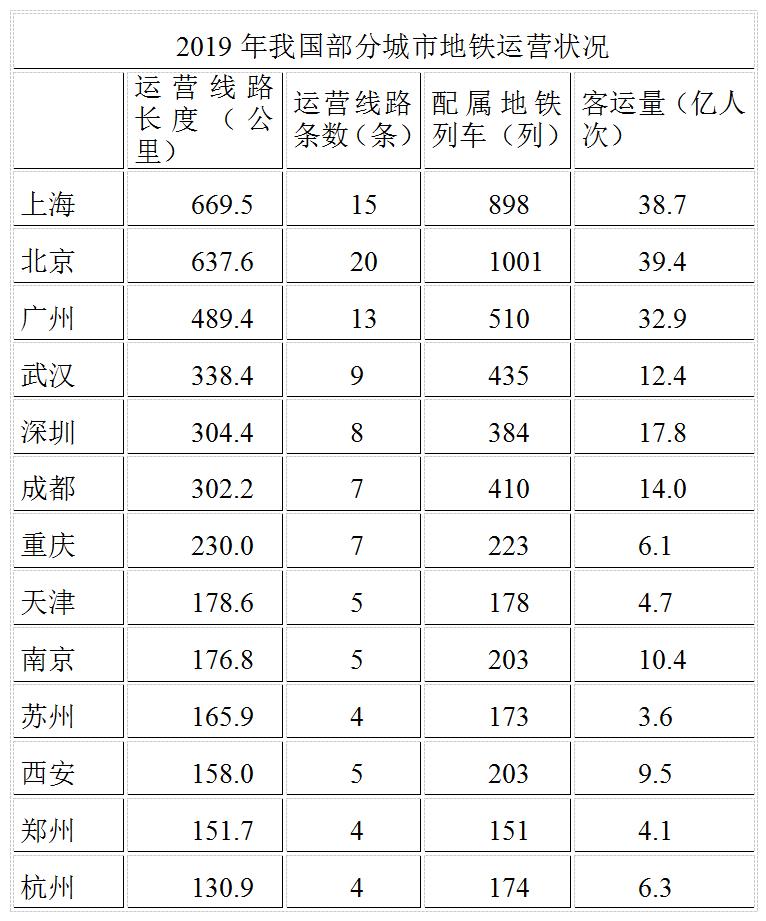 2019年末,我國城軌交通配屬地鐵列車6178列,全年實現(xiàn)地鐵客運量227.76億人次。