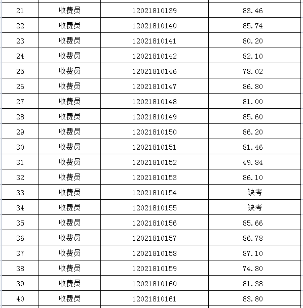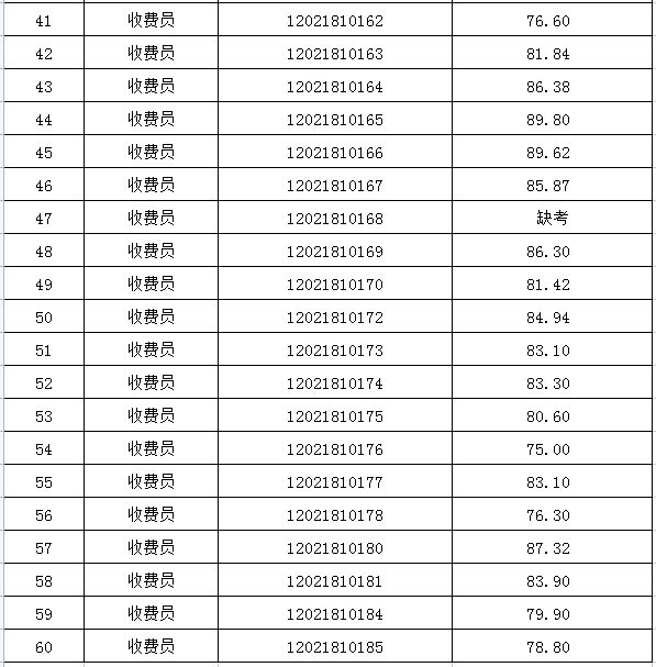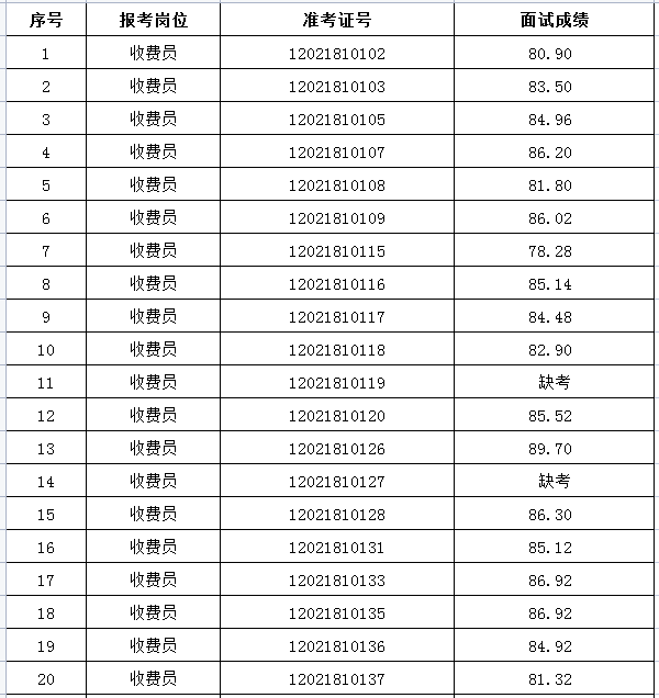 一、收費(fèi)員崗位面試成績
