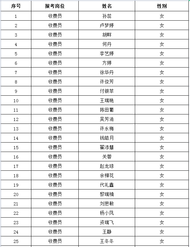 以下為進(jìn)入體檢環(huán)節(jié)的考生名單:
