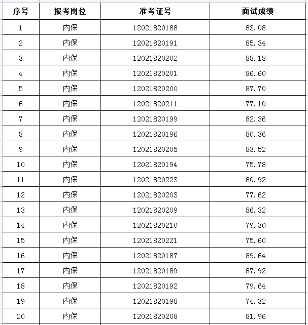 二、內(nèi)保崗位面試成績
