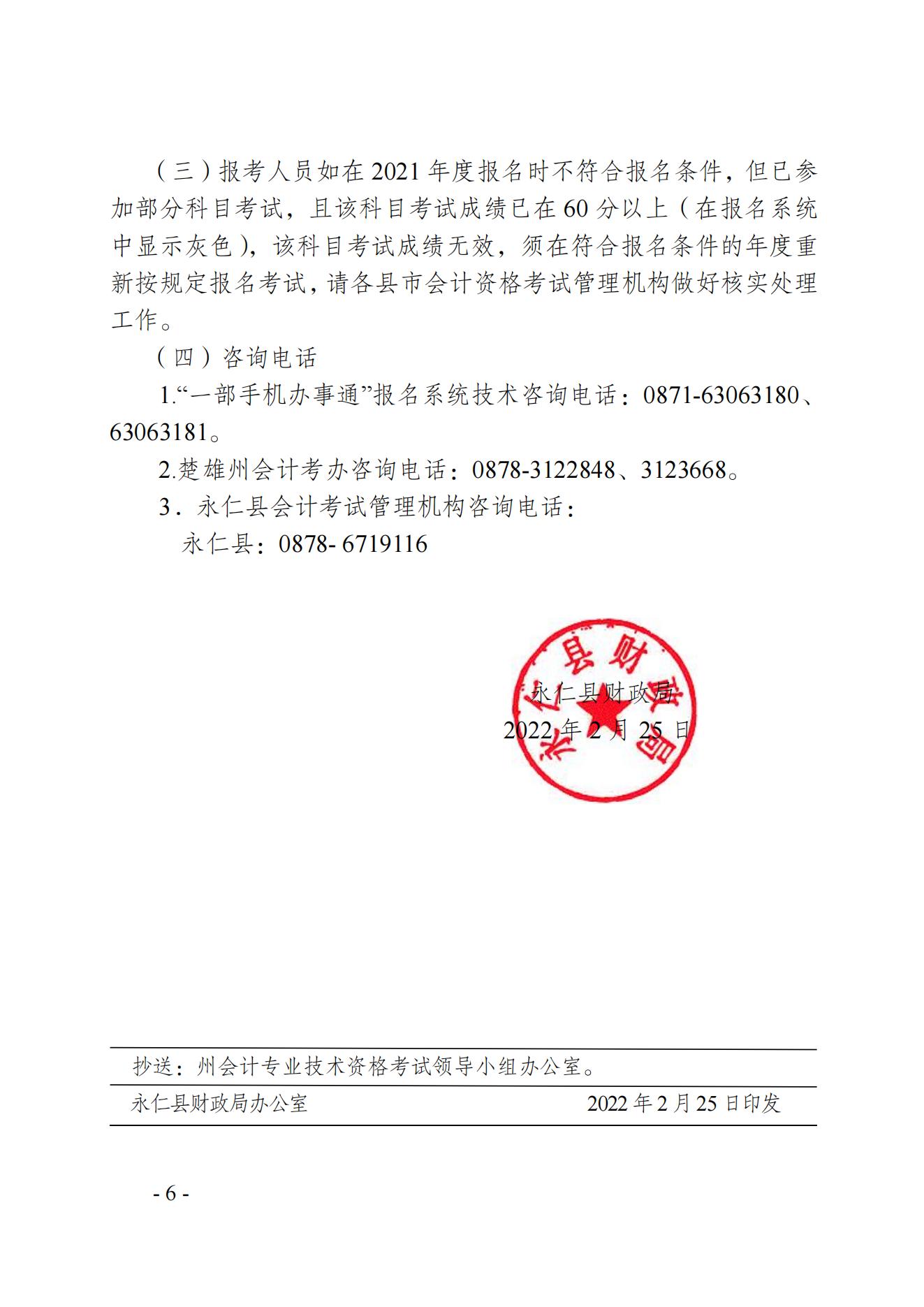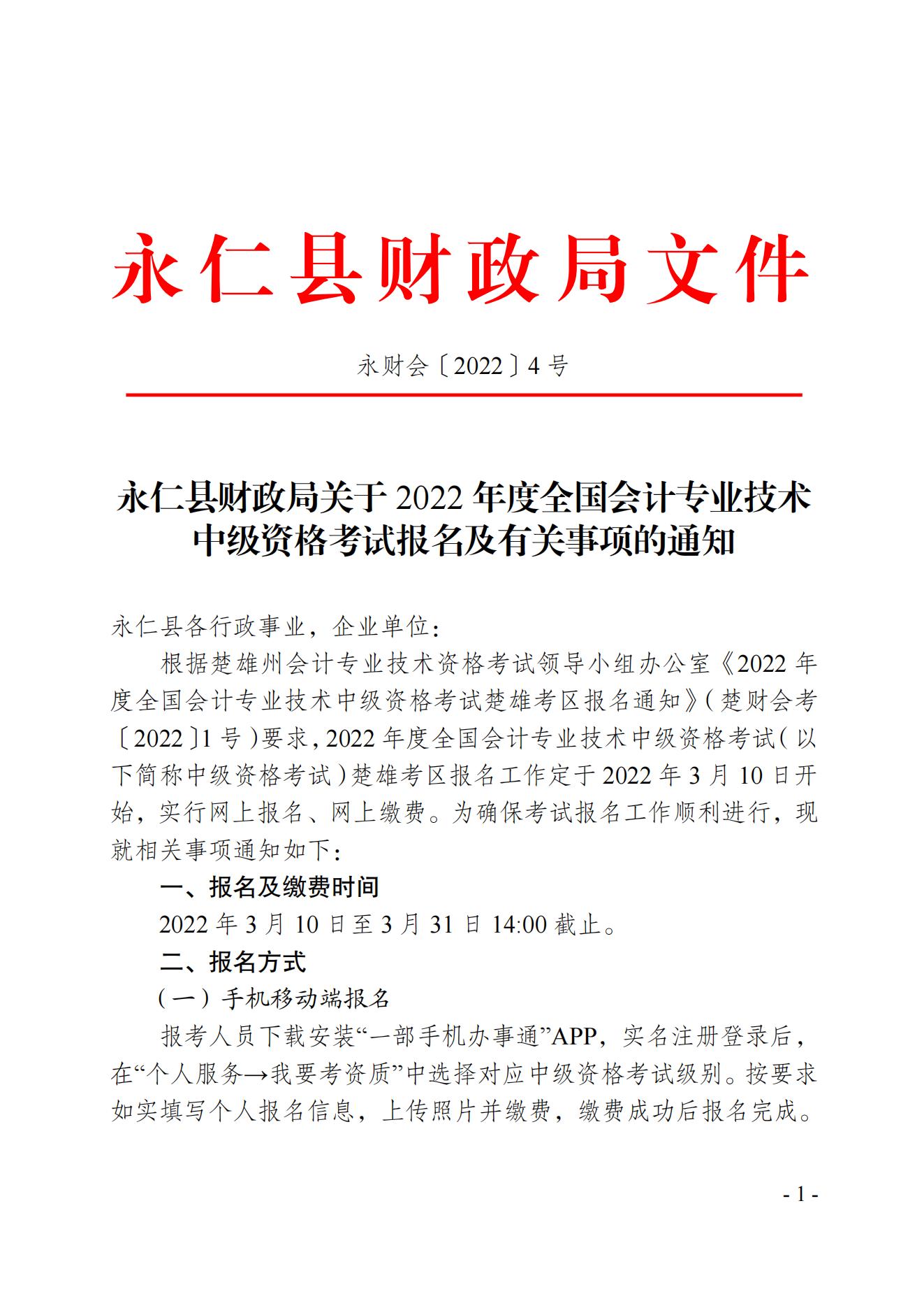 永仁縣財(cái)政局關(guān)于2022年度全國(guó)會(huì)計(jì)專(zhuān)業(yè)技術(shù)中級(jí)資格考試報(bào)名及有關(guān)事項(xiàng)的通知