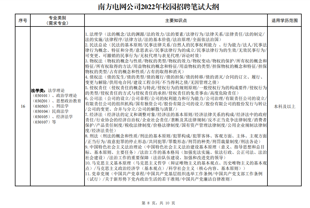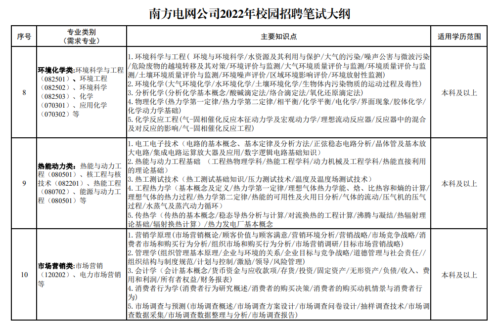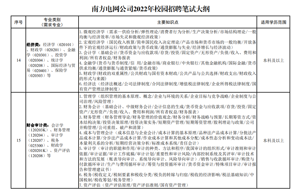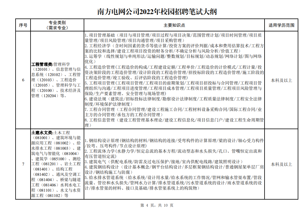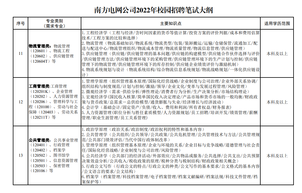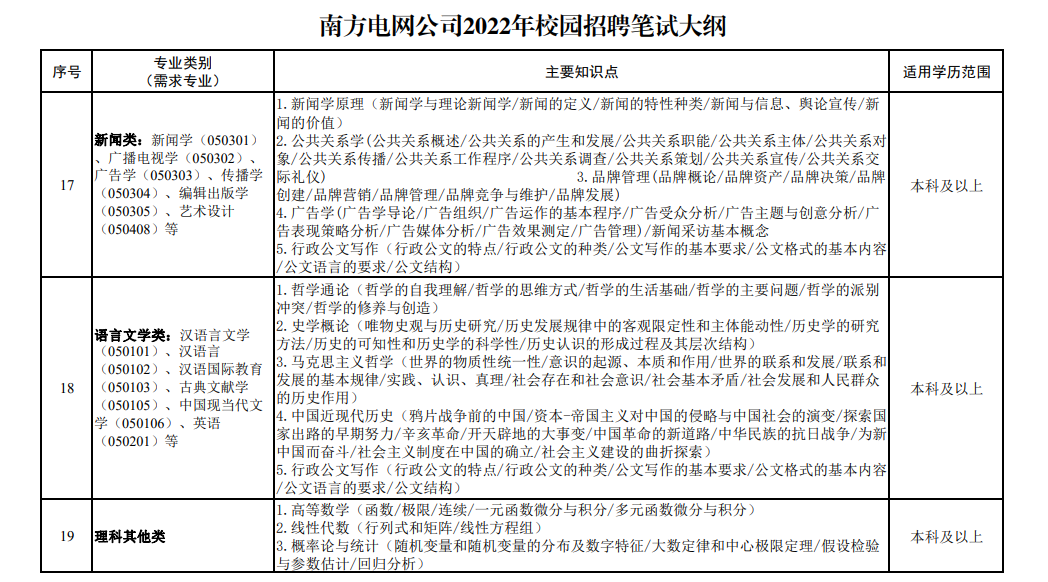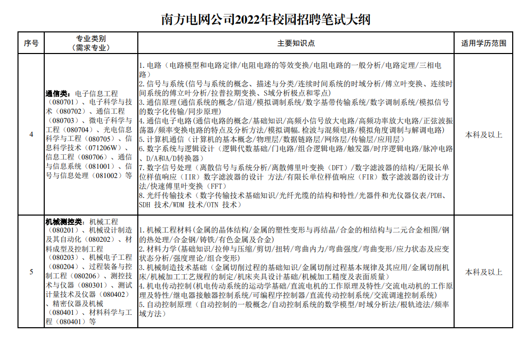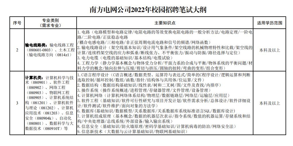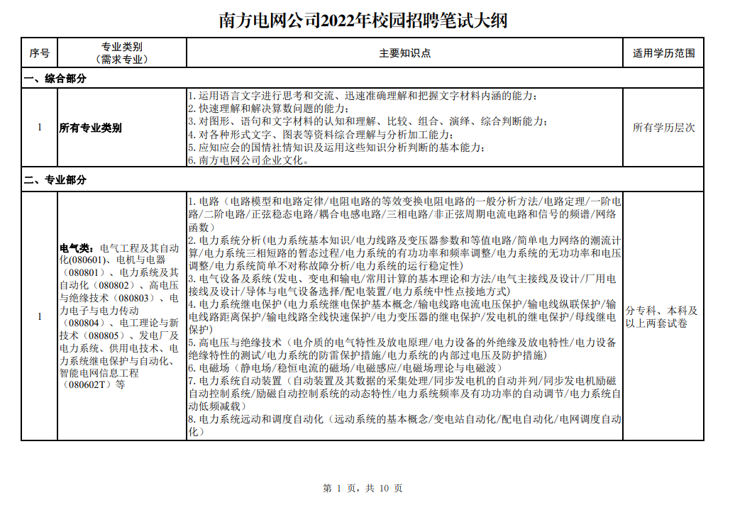 筆試范圍包括綜合知識(30%)和專業(yè)知識(70%),其中專業(yè)知識考試內(nèi)容按應(yīng)聘畢業(yè)生所學(xué)專業(yè)的類別進(jìn)行劃分。南方電網(wǎng)公司2022年筆試大綱詳見附件。