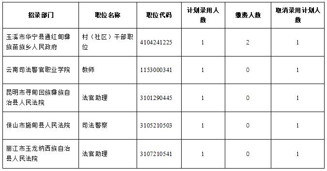 云南省2022年度公務(wù)員招錄筆試報名階段取消職位表