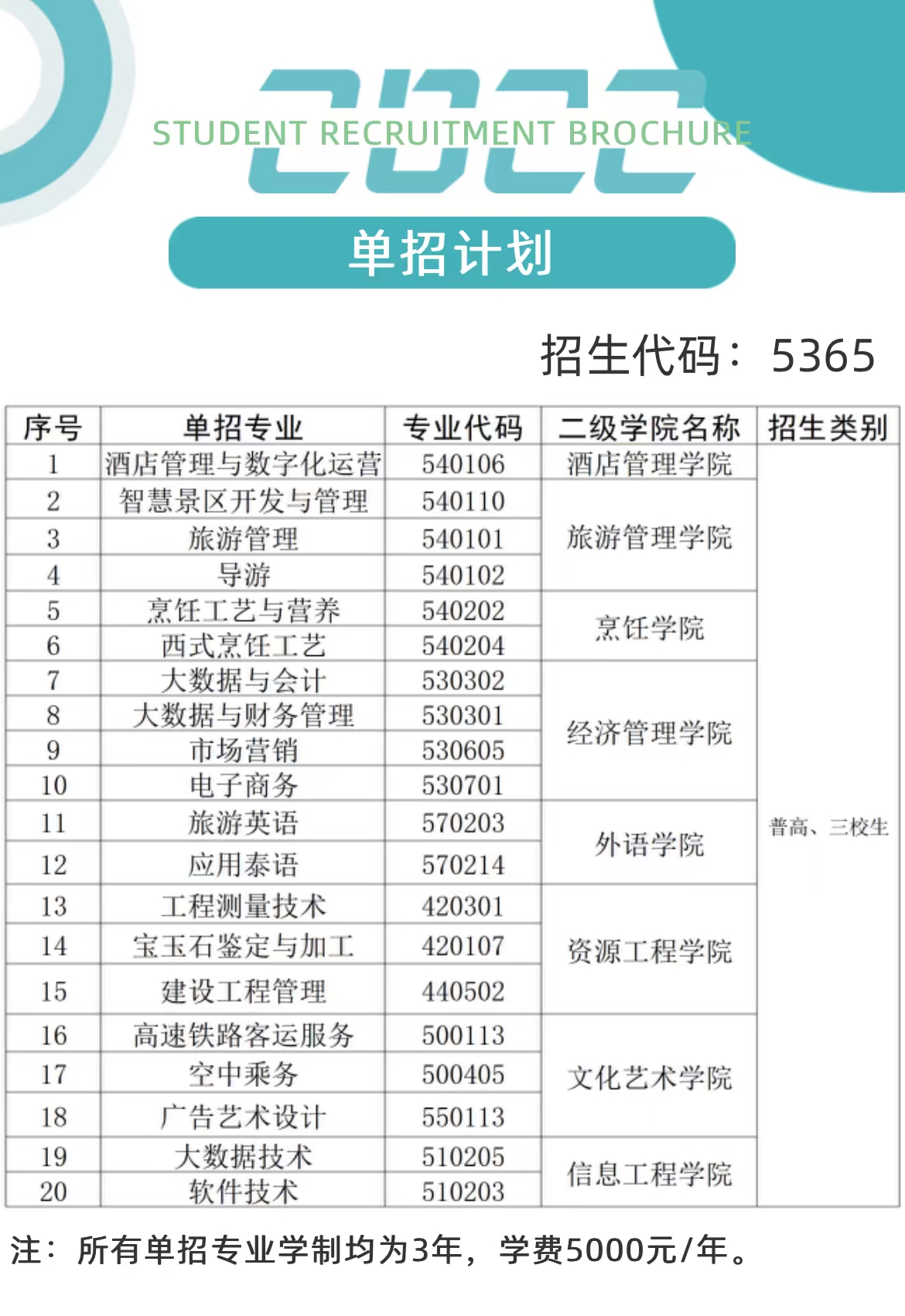 單招速看!云南旅游職業(yè)學(xué)院2022單招簡章來啦