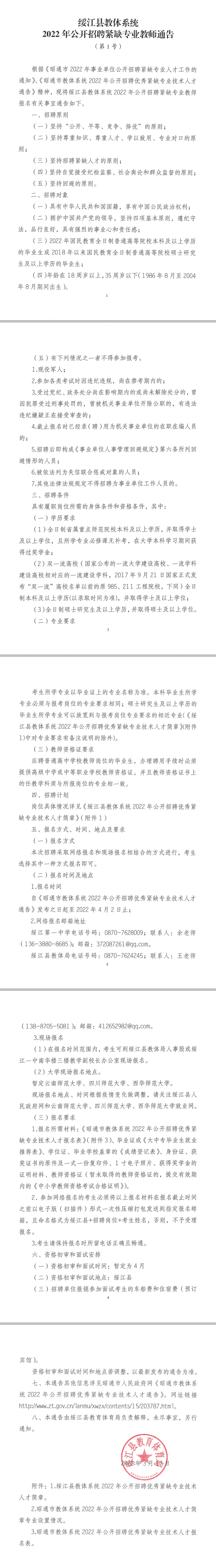 綏江縣教體系統(tǒng)2022年公開招聘緊缺專業(yè)教師通告(第1號)
