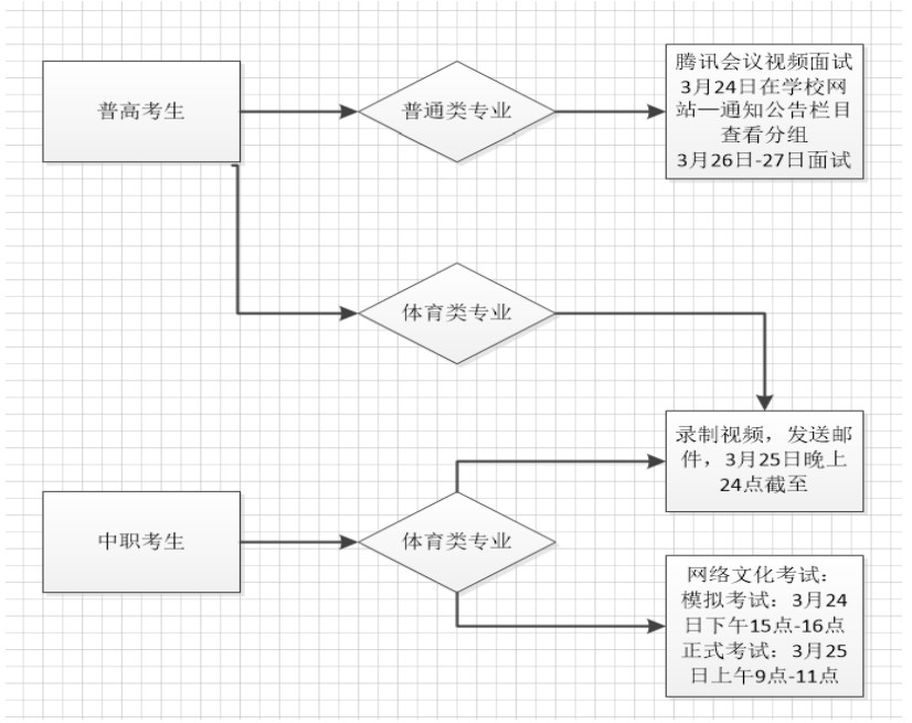 報(bào)考以上專(zhuān)業(yè)考生的職業(yè)適應(yīng)性測(cè)試形式為通過(guò)“騰訊會(huì)議”app遠(yuǎn)程視頻面試,時(shí)間為10分鐘以?xún)?nèi),考官提問(wèn)3-5道問(wèn)題,根據(jù)考生回答情況進(jìn)行打分,滿(mǎn)分200分。(具體面試內(nèi)容及打分標(biāo)準(zhǔn)見(jiàn):附件1 普高考生職業(yè)適應(yīng)性測(cè)試(視頻面試)細(xì)則)