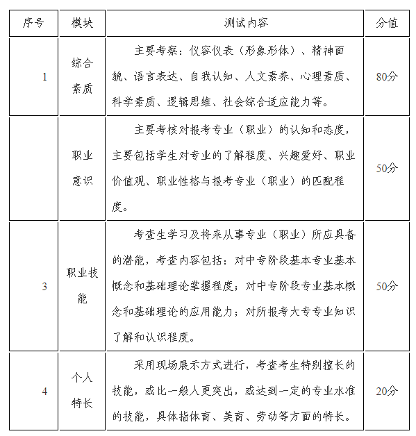 三校生和應(yīng)(往)屆畢業(yè)生采用“文化素質(zhì)+職業(yè)能力”評(píng)價(jià)方式,其中:文化素質(zhì)考試200分,綜合素質(zhì)職業(yè)技能面試200分,總分400分,文化素質(zhì)考試和職業(yè)技能均采用遠(yuǎn)程網(wǎng)絡(luò)考試方式進(jìn)行。