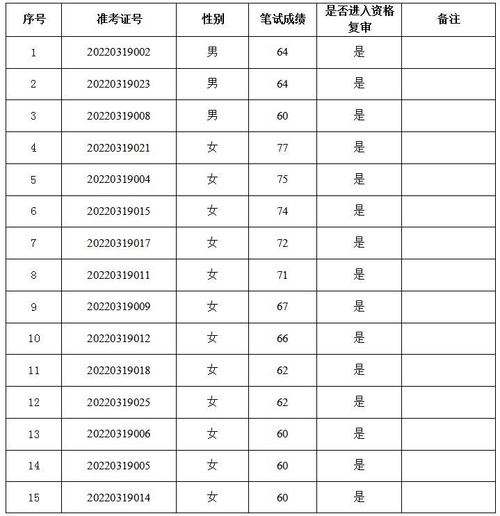 衛(wèi)生監(jiān)督協(xié)管員筆試成績和進(jìn)入資格復(fù)審人員通告