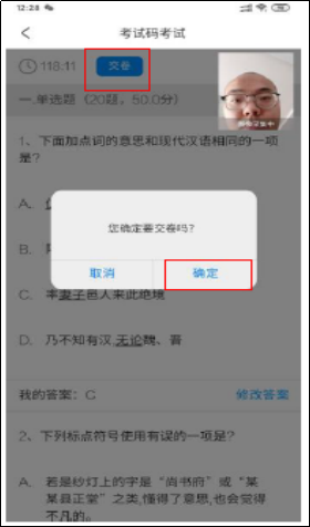 (七)根據(jù)《國(guó)家教育考試違規(guī)處理辦法》有關(guān)規(guī)定,嚴(yán)禁考生通過(guò)截屏或拍照等方式向外發(fā)送、傳遞試題信息,不得發(fā)送到朋友圈或網(wǎng)上,截屏和拍照系統(tǒng)都可以檢測(cè)出來(lái),可視情況判別為作弊,請(qǐng)誠(chéng)信考試。