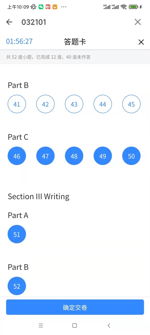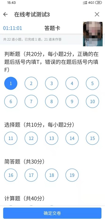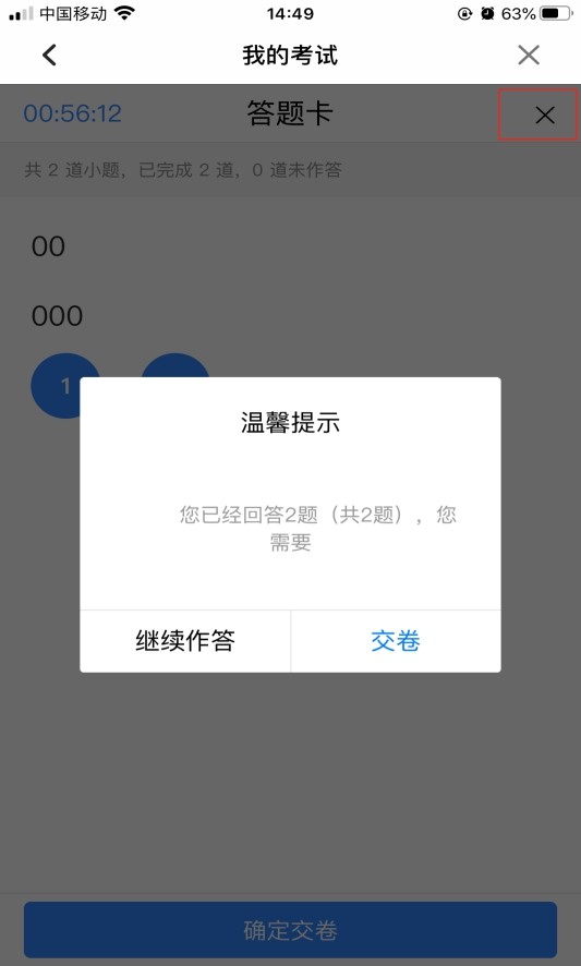 學(xué)生答題完畢后,在規(guī)定的時(shí)間即可點(diǎn)擊“確定交卷”,若沒有點(diǎn)擊交卷按鈕,考試時(shí)間截止后系統(tǒng)也會(huì)自動(dòng)交卷。