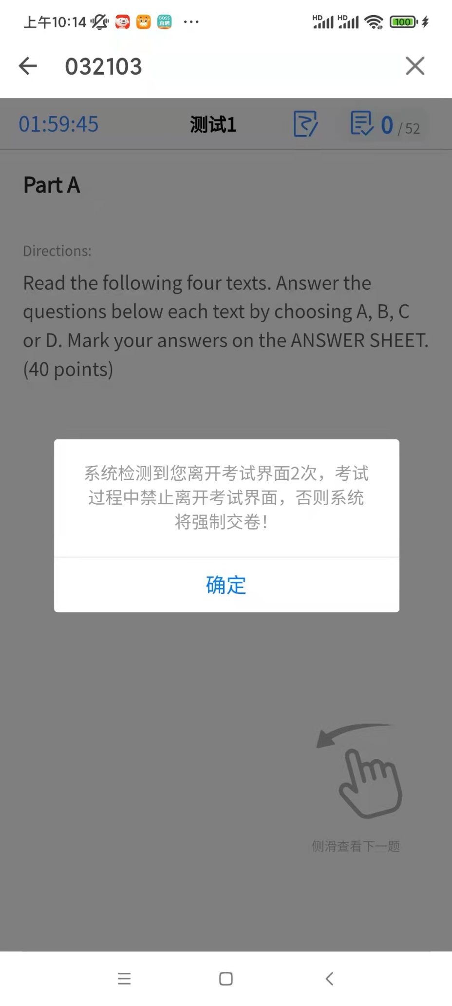 考試過程中不要切換屏幕,系統(tǒng)會(huì)有截屏記錄。