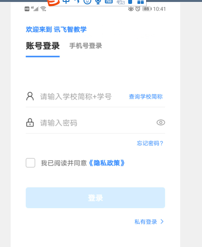 1.考生于考試前15分鐘打開手機(jī)訊飛智教學(xué)APP,輸入登錄賬號(hào)和密碼,點(diǎn)擊“我已閱讀并同意《隱私政策》”點(diǎn)擊“登錄”。