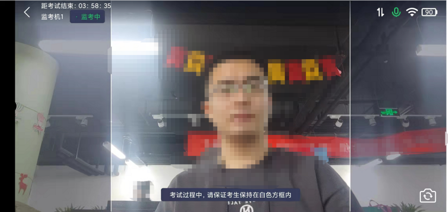 (四)考試過(guò)程進(jìn)行實(shí)時(shí)抓拍驗(yàn)證,如抓拍照片不能通過(guò)系統(tǒng)驗(yàn)證(抓拍中出現(xiàn)其他陌人員、圖片不清晰、圖片未照到面部、戴耳機(jī)、使用手機(jī)打電話等),經(jīng)核實(shí)后按作弊處理,取消考生錄取資格。如遇特殊情況,必須在手機(jī)監(jiān)控下進(jìn)行。請(qǐng)使用非監(jiān)考手機(jī)聯(lián)系客服。