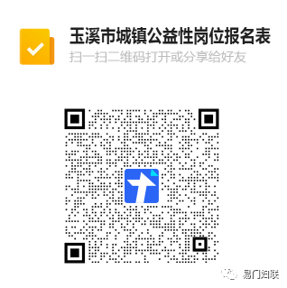 符合《玉溪市就業(yè)局關(guān)于城鎮(zhèn)公益性崗位安置對象報名的公告》第二條規(guī)定條件的就業(yè)困難人員需填報《玉溪市城鎮(zhèn)公益性崗位報名表》,掃描下方二維碼進行填報。