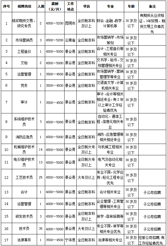 為助推云投林紙高質量發(fā)展,需招聘崗位、人數(shù)如下: