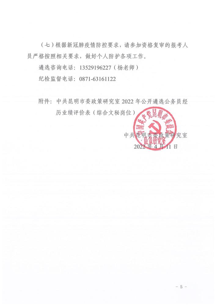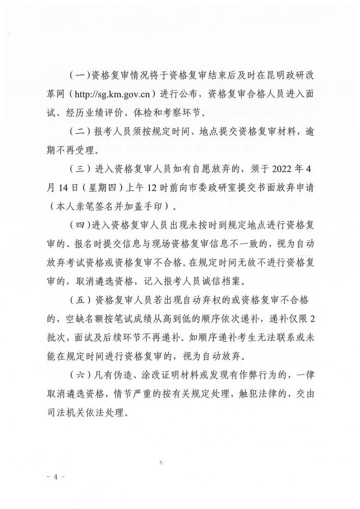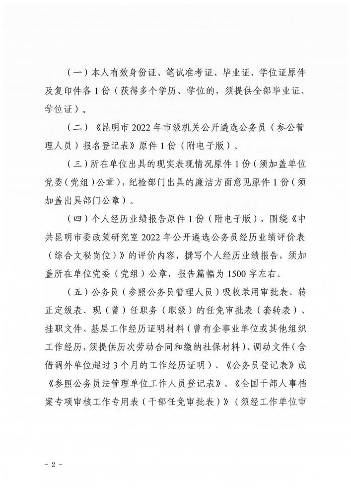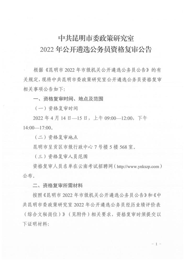 中共昆明市委政策研究室2022年公開遴選公務(wù)員資格復(fù)審公告