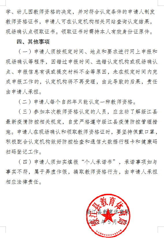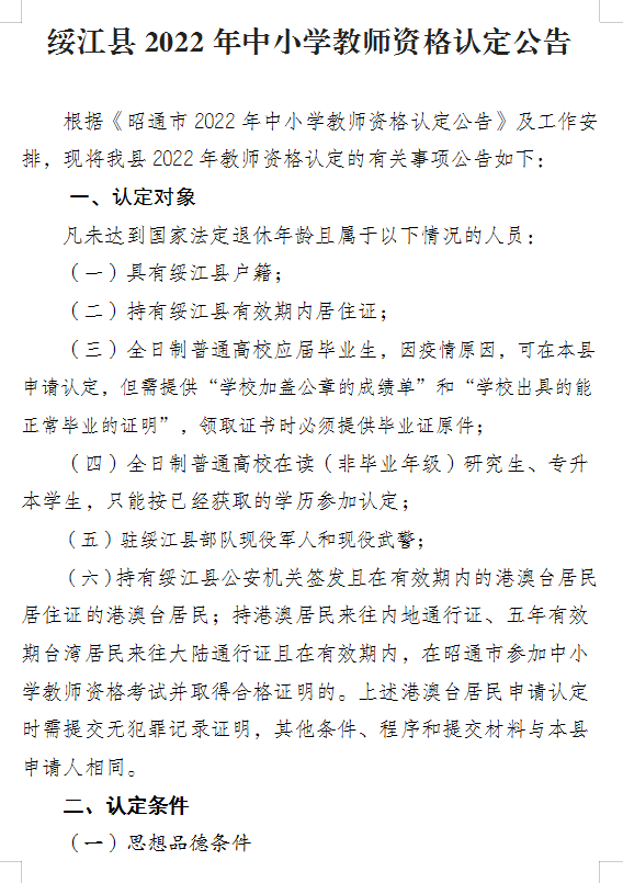 綏江縣2022年中小學(xué)教師資格認定公告