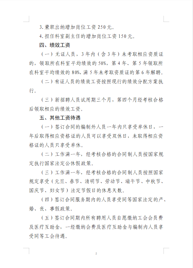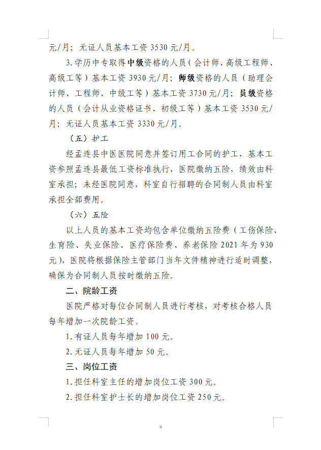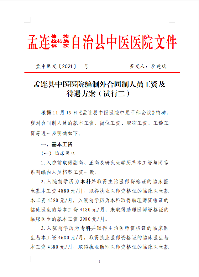 3.孟連縣中醫(yī)醫(yī)院編制外合同制人員工資及待遇方案(試行二)