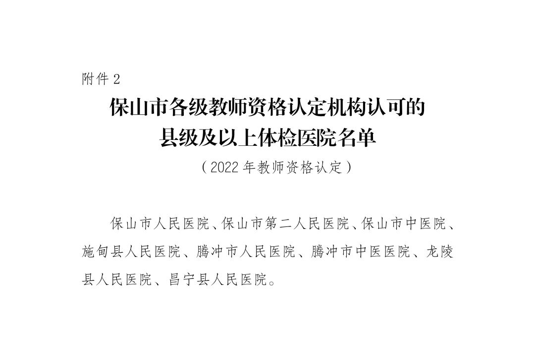 附件2:《保山市各級(jí)教師資格認(rèn)定機(jī)構(gòu)認(rèn)可的縣級(jí)及以上體檢醫(yī)院名單》