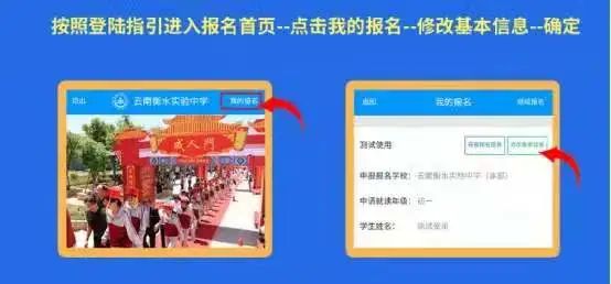 第五步:選擇登記校區(qū),填寫基本信息并提交(報名學校填寫:云南衡水實驗中學西雙版納校區(qū))