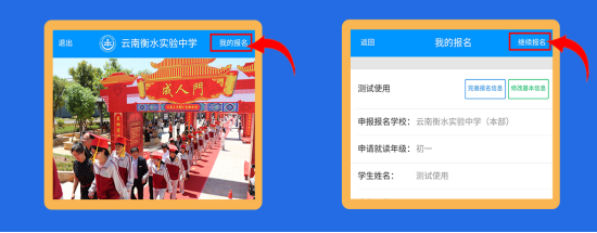 家長可以使用同一賬號給多個孩子預登記,按照登陸指引進入報名首頁——點擊我的報名——點擊繼續(xù)報名。