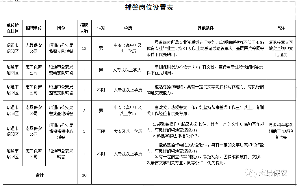昭通志昂保安服務(wù)有限責(zé)任公司招聘公告