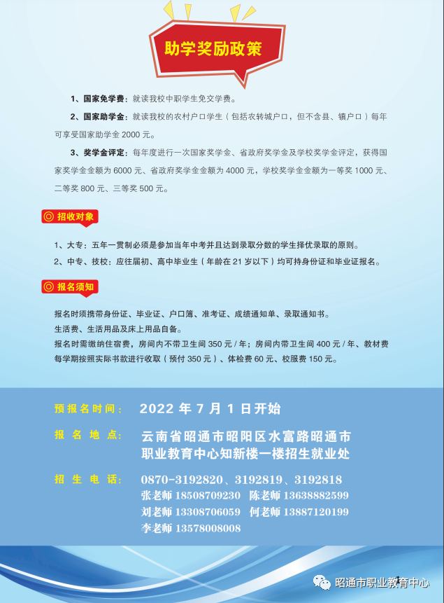 昭通市職業(yè)教育中心2022年招生簡(jiǎn)章