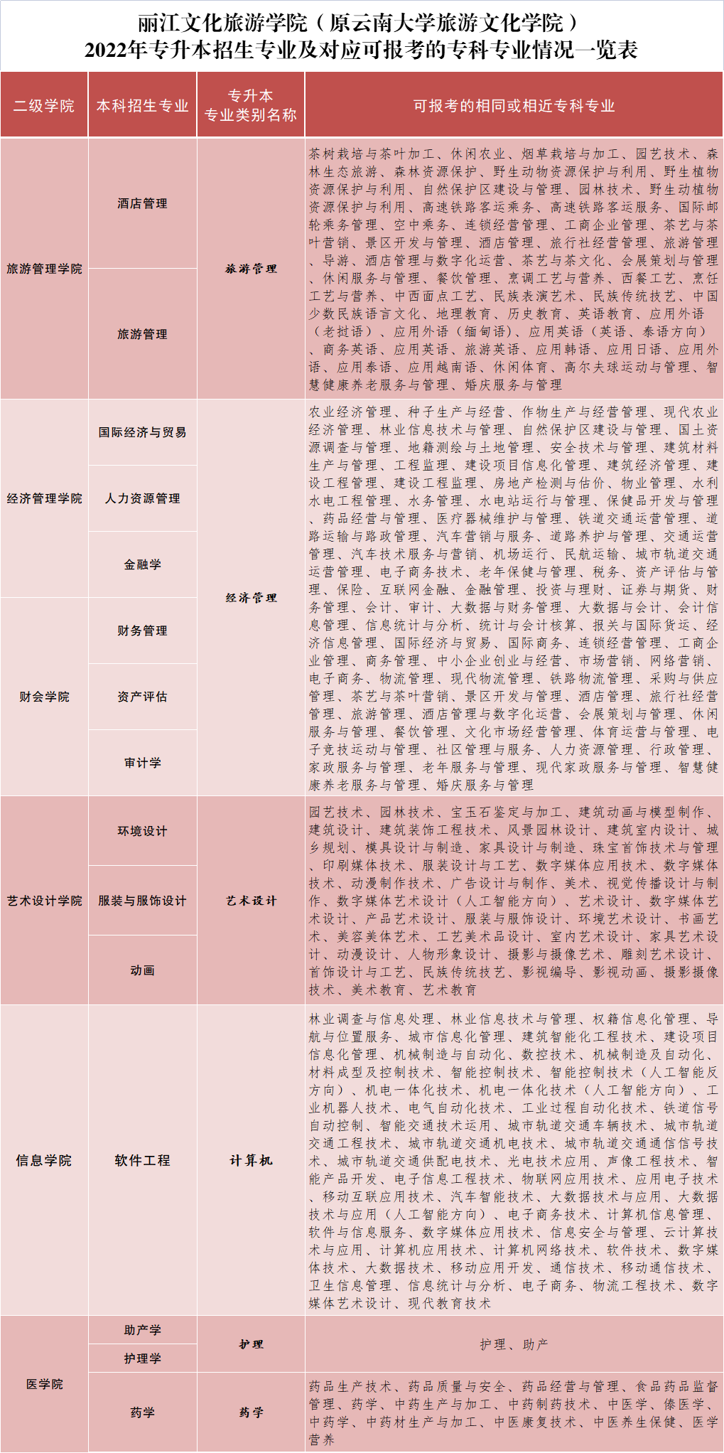三、2022年專升本招生專業(yè)及對(duì)應(yīng)可報(bào)考的??茖I(yè)情況一覽表