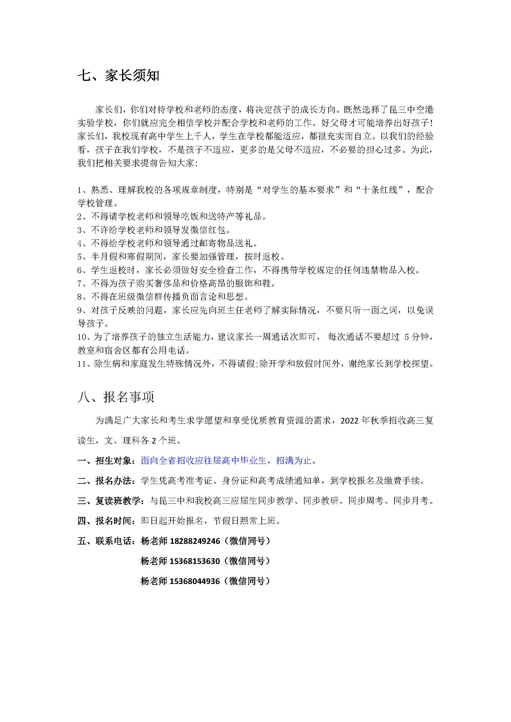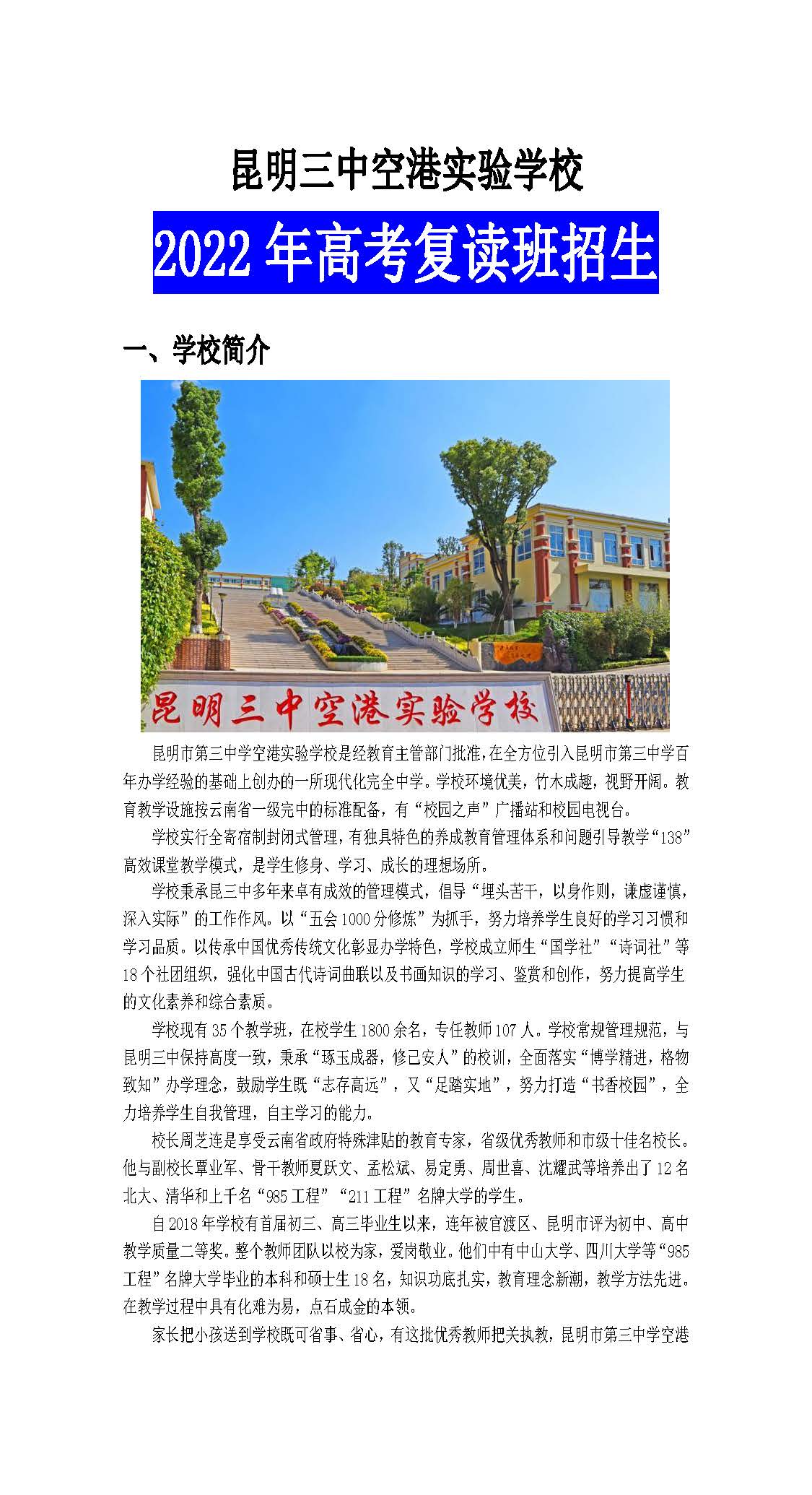 2022年昆明三中空港實(shí)驗(yàn)學(xué)校高考復(fù)讀班招生