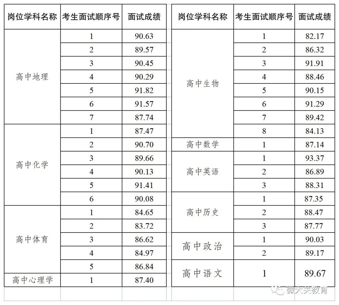 按照《昭通市教體系統(tǒng)2022年公開招聘優(yōu)秀緊缺專業(yè)技術(shù)人才通告》和《昭通市2022年事業(yè)單位公開招聘優(yōu)秀緊缺專業(yè)技術(shù)人才實(shí)施辦法》,現(xiàn)將大關(guān)縣教體系統(tǒng)2022年優(yōu)秀緊缺專業(yè)教師面試成績公示如下: