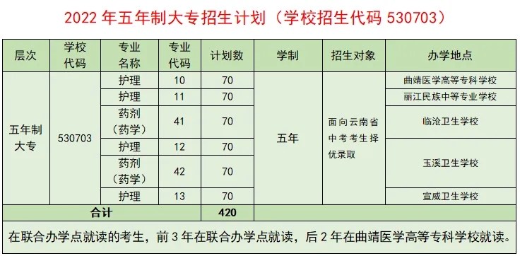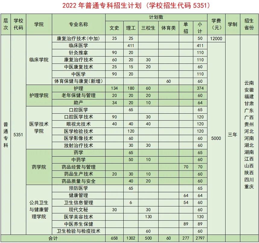 曲靖醫(yī)學(xué)高等??茖W(xué)校2022年招生計(jì)劃