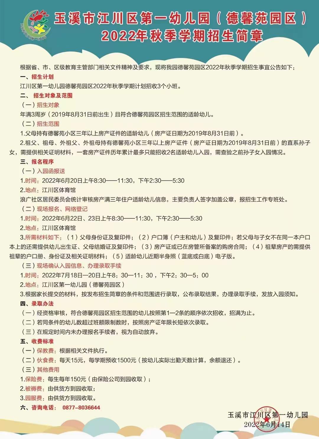 2022年玉溪市江川區(qū)第一幼兒園(德馨苑園區(qū))秋季學(xué)期招生簡章