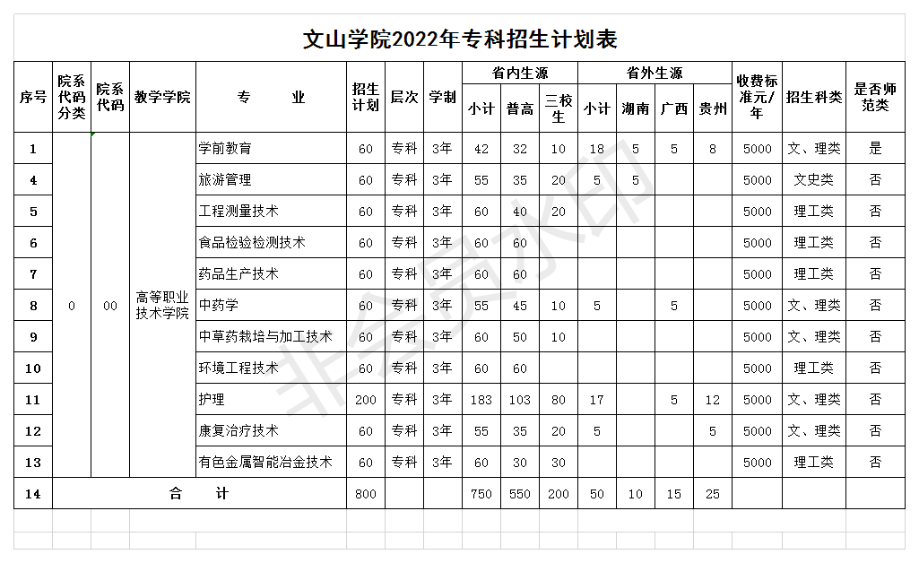 文山學院2022年??普猩媱澅?/strong>