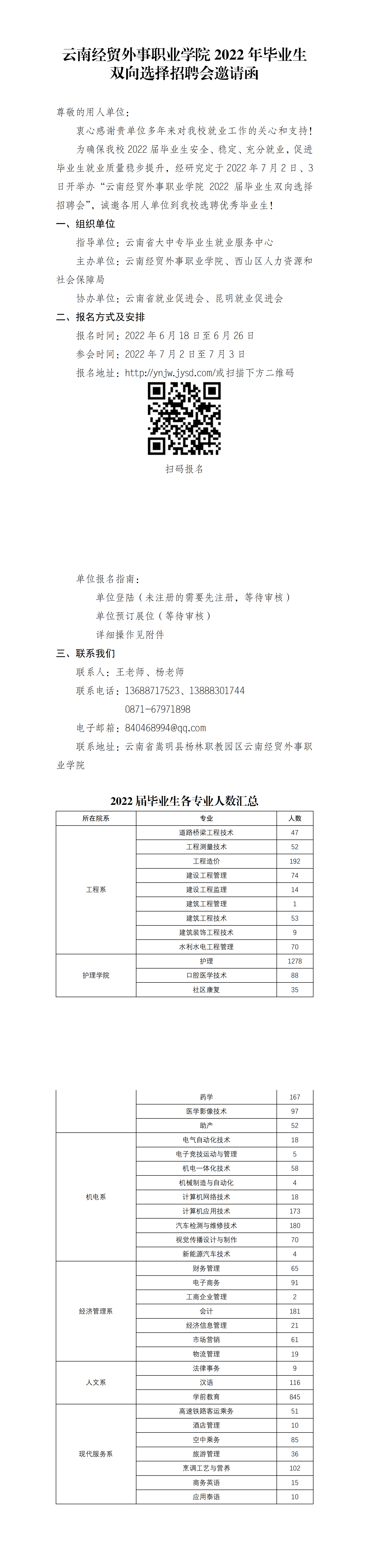 云南經(jīng)貿(mào)外事職業(yè)學(xué)院2022年畢業(yè)生雙向選擇招聘會邀請函