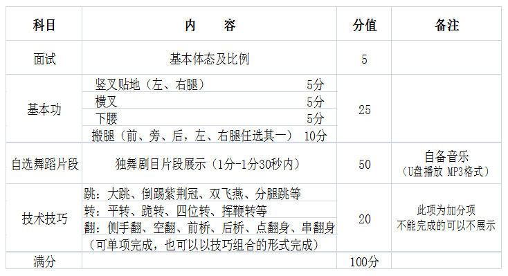 品行端正、身心健康,有良好的行為習(xí)慣和較強(qiáng)的規(guī)則意識(shí);具有體育、美術(shù)、音樂(lè)、舞蹈方面的特長(zhǎng)或潛質(zhì)。