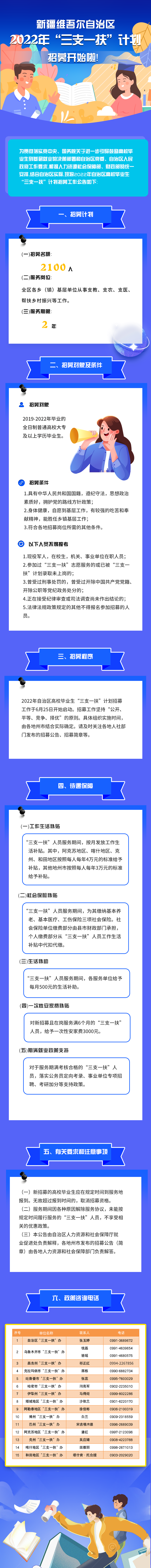 2022年新疆維吾爾自治區(qū)高校畢業(yè)生“三支一扶”計(jì)劃招募開始啦! 來源:http://rst.xinjiang.gov.cn/rst/c100405/202206/798a53fc68bf448790f29ac7306d41c9.shtml