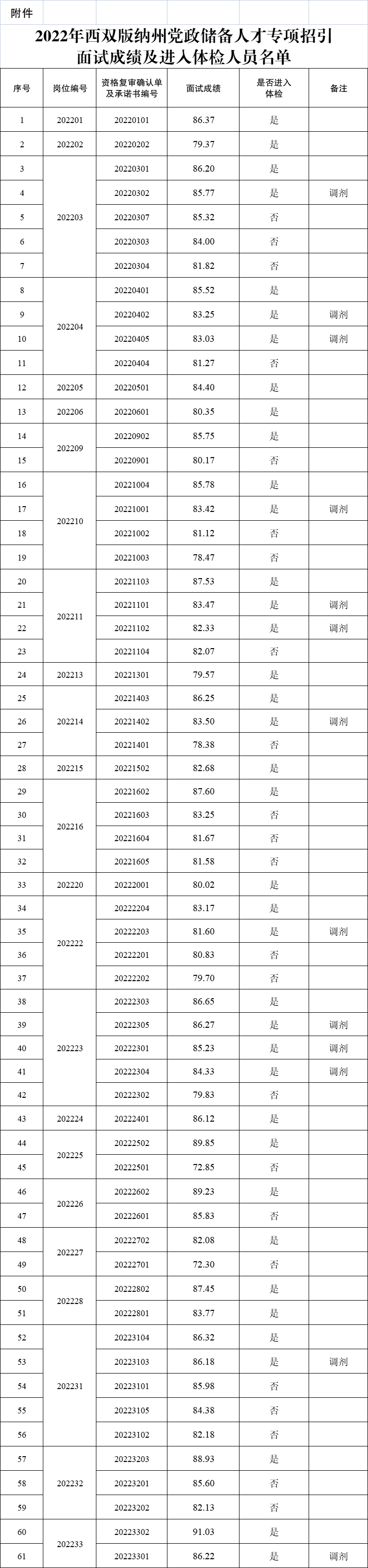 附件:2022年西雙版納州黨政儲(chǔ)備人才專項(xiàng)招引面試成績及進(jìn)入體檢人員名單