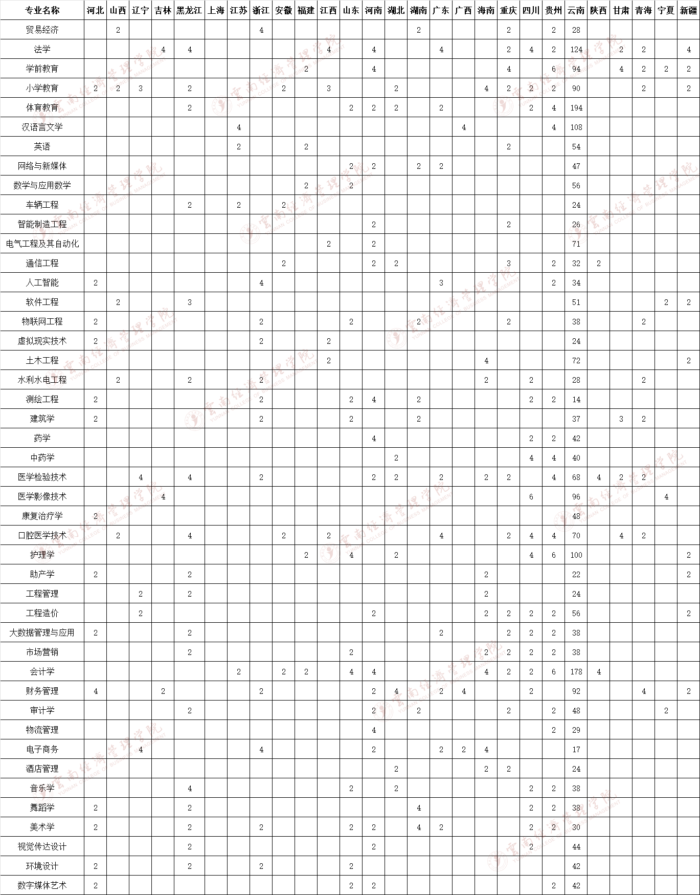 2023年云南經(jīng)濟(jì)管理學(xué)院各省份計(jì)劃數(shù)