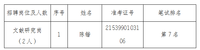 根據(jù)《云南文獻(xiàn)研究院(云南書畫院)2022年事業(yè)單位公開招聘工作人員公告》,因部分考生自愿放棄資格復(fù)審和面試資格,按照筆試成績從高到低的順序,遞補(bǔ)以下考生進(jìn)入資格復(fù)審: