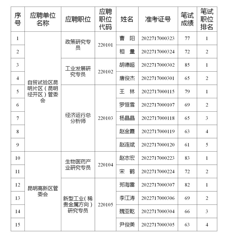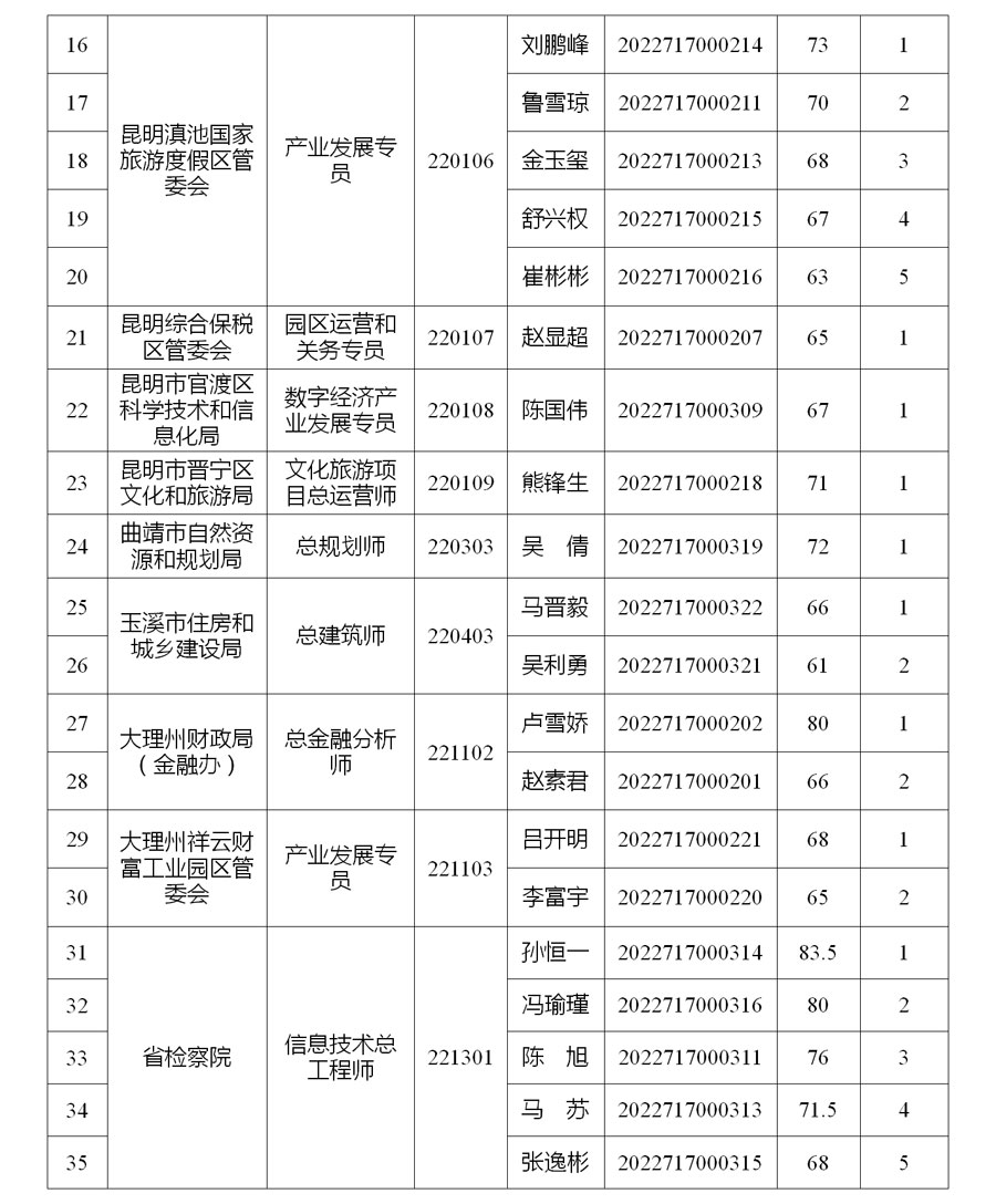 附件:2022年云南省聘任制公務(wù)員公開(kāi)招聘面試人員名單