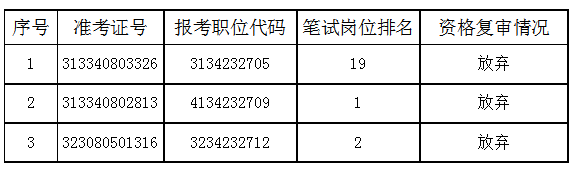 不合格、放棄人員以及遞補(bǔ)資格復(fù)審人員名單公示公告
