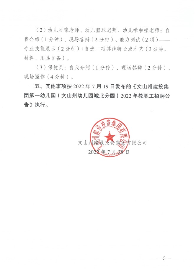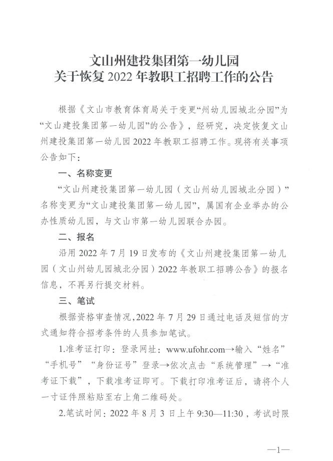 文山州建投集團(tuán)第一幼兒園關(guān)于恢復(fù)2022年教職工招聘工作的公告