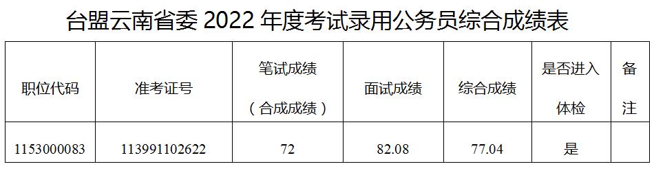 附件:臺盟云南省委2022年度考試錄用公務(wù)員綜合成績表