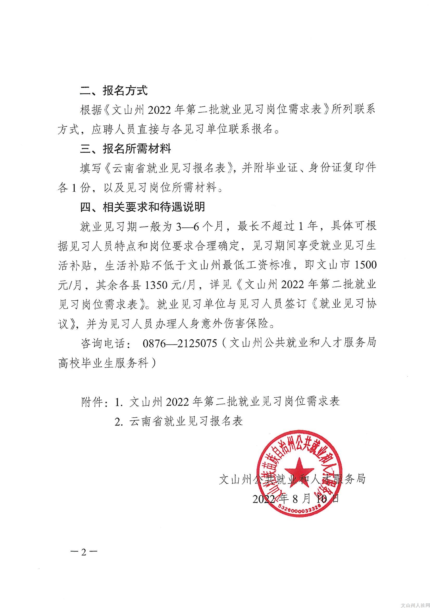 文山州2022年第二批就業(yè)見習(xí)崗位需求表 | ||||||||||||