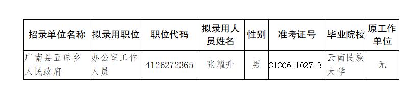 根據(jù)《云南省2022年度考試錄用公務員公告》有關(guān)規(guī)定,經(jīng)筆試、資格復審、面試、體檢、考察等程序,現(xiàn)將文山州2022年度考試錄用公務員擬錄用人員名單予以公示。