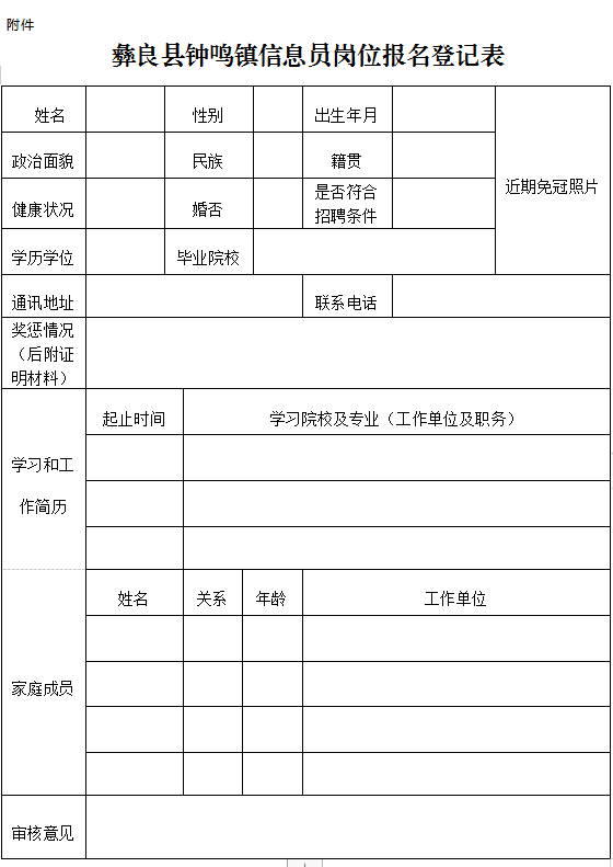 附件:彝良縣鐘鳴鎮(zhèn)信息員崗位報(bào)名表