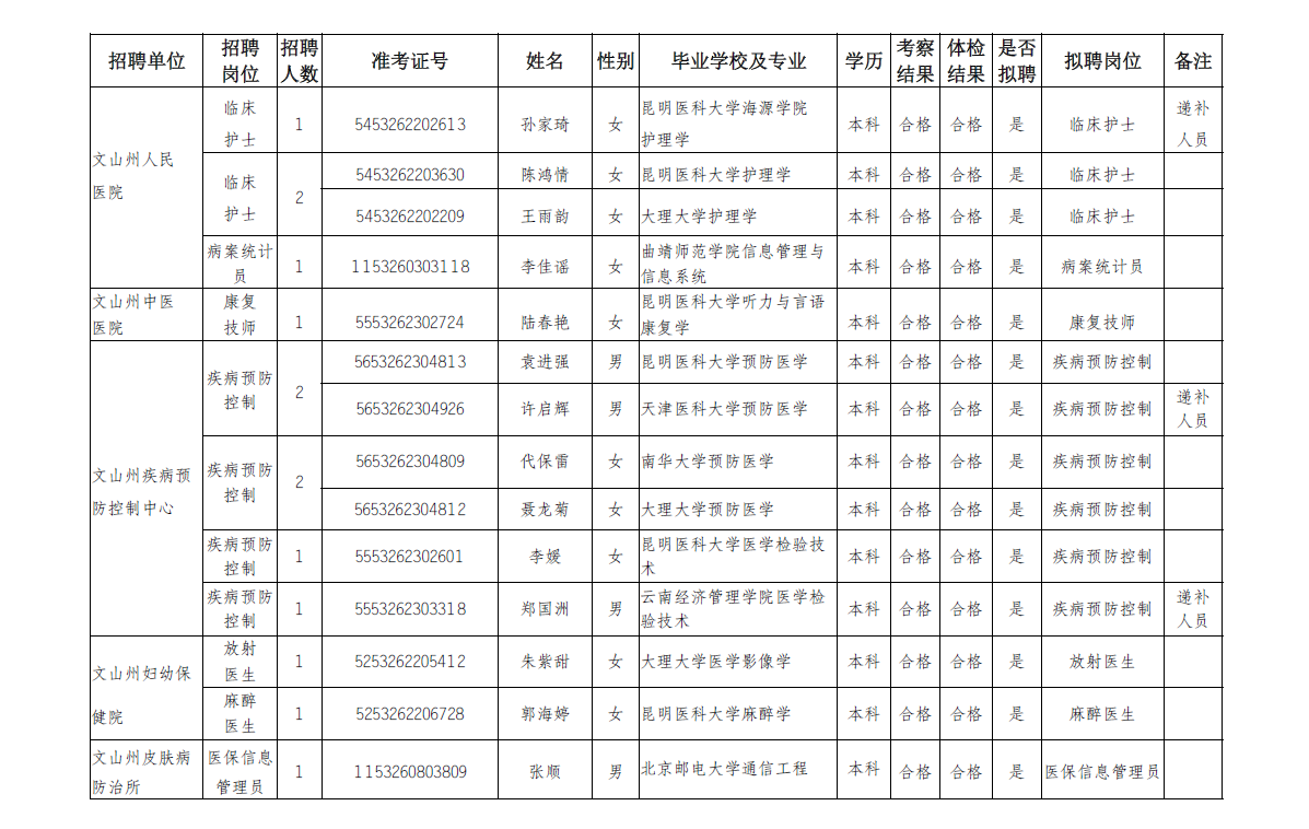 文山州衛(wèi)生健康委員會(huì)2022年直屬事業(yè)單位公開(kāi)招聘工作人員擬聘公示