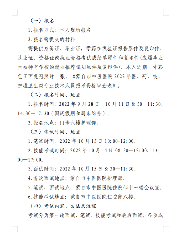 蒙自市中醫(yī)醫(yī)院2022年下半年專業(yè)技術(shù)人員招聘公告