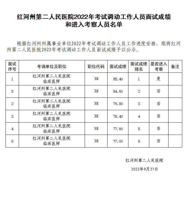 紅河州第二人民醫(yī)院2022年考試調(diào)動工作人員