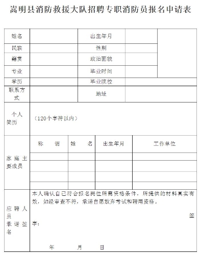 1.《嵩明縣消防救援大隊(duì)政府專職消防員報(bào)名登記表》1份(文末附表)